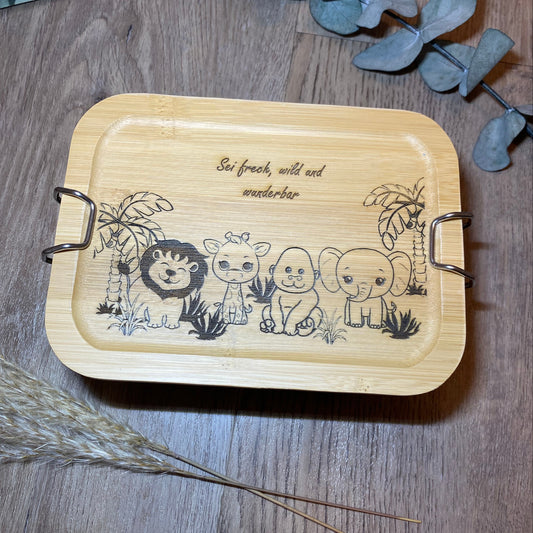 Lunchbox aus Edelstahl mit Bambusdeckel