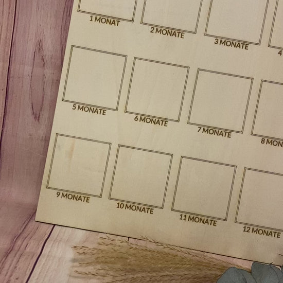Dokumentiere die kostbaren Momente des ersten Lebensjahres mit dieser eleganten Meilensteintafel aus hochwertigem Holz.