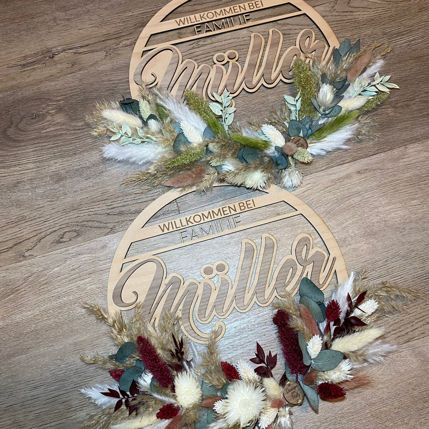Ein echter Hingucker unser personalisierter Familienkranz.
